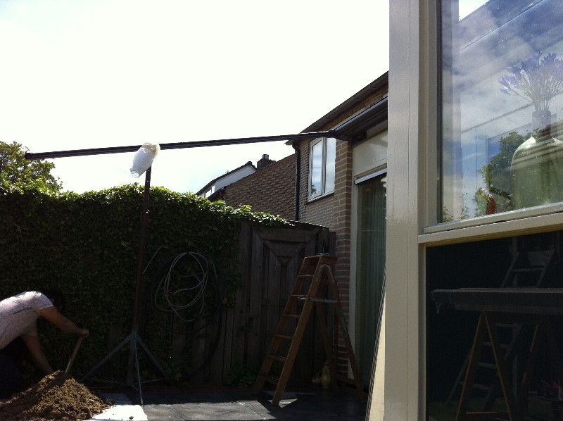 Op deze pagina plaatsen wij regelmatig nieuwe projecten. Wij vinden dat leuk om met u te delen. Maar ook om u te inspireren, want door voorbeelden te laten zien wordt iets sneller duidelijk. In de acht foto's ziet in acht stappen hoe wij een pergola zonwering plaatsen.